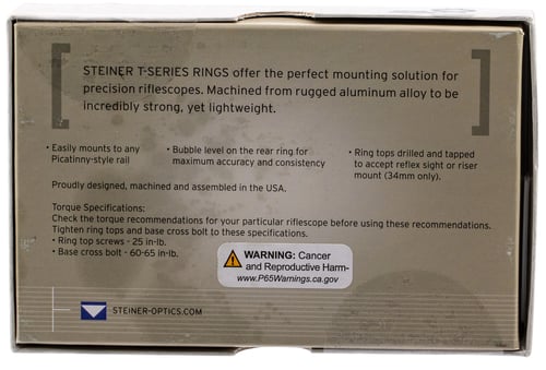 Steiner Rings are the foundation of a precision shooting system. They are designed and engineered to guarantee precise optical alignment and shot-after-shot accuracy. The T-Series Rings offer the perfect riflescope mounting solution for precision tactical shooting.