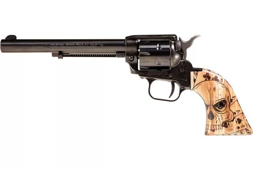 Heritage Mfg RR22B6DMH Rough Rider Dead Mans Hand 22 LR 6 Shot, 6.50" Black Steel Barrel, Black Zinc Alloy Frame, Black Cylinder, Dead Mans Hand Ivory Grip, Hammer/Thumb Safety, Exposed Hammer